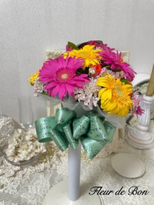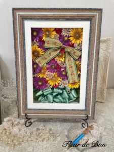 【お客様の神奈川県T様より】前撮りで使用したブーケの保存をお願いしました。少し日が経ってからのお願いにも関わらず快く受け入れていただき大変助かりました!ブーケに使用されたリボンやビーズ等の装飾品も残したくお願いしたのですが、装飾品とお花の配置センスが良く 誰が見ても「素敵だね!」と言っていただけるような仕上がりになっておりました!パートナーも私も大歓喜です✨早速玄関に飾りましたが、目に入るたびに幸せな気持ちになります☺️🌸また、おまけのボールペンもありがとうございました!日常的に使う物として、お花と想い出を身につけることが出来るのはとても嬉しいです。丁寧なご対応にも関わらずお値段も優しく、結婚を控える友人にも是非勧めたいです!この度は大切な想い出を形に残していただき、ありがとうございました💐✨【fleur-de-bonより】大切なお花の保存をご依頼いただきありがとうございます。色鮮やかなブーケをお預かりし、装飾品と共にアレンジプラン〔エトワール〕にて保存させていただきました。見るたびに思い出が蘇るお品となりとても嬉しく思います。また当店の対応につきましてもとても温かいお言葉をいただきありがとうございます。これからもお客様に安心、満足をいただけますよう益々精進して参ります!ご縁をいただきありがとうございます。末永いご多幸をお祈りいたします。